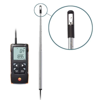 testo 425 热线风速计可伸缩探头(最大长度820 mm)方便进行管道测量。在通风管道或出风口中进行简单、快速、精确的风速测量和风量计算,更容易在高空或大直径管道中完成测量工作,所有相关风量计算,如风量或时均和多点平均值,都是仪器自动执行的。
